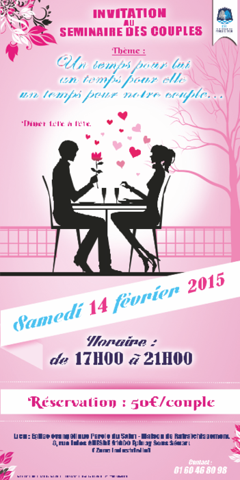 Une soirée pour son mari, pour sa femme et pour son couple. Un mariage heureux, de qualité et à durée indéterminée, c’est possible ! Un couple pour la vie, c’est possible ! Mais cela ne vient pas tout seul, ça se travaille. Il faut s’investir.